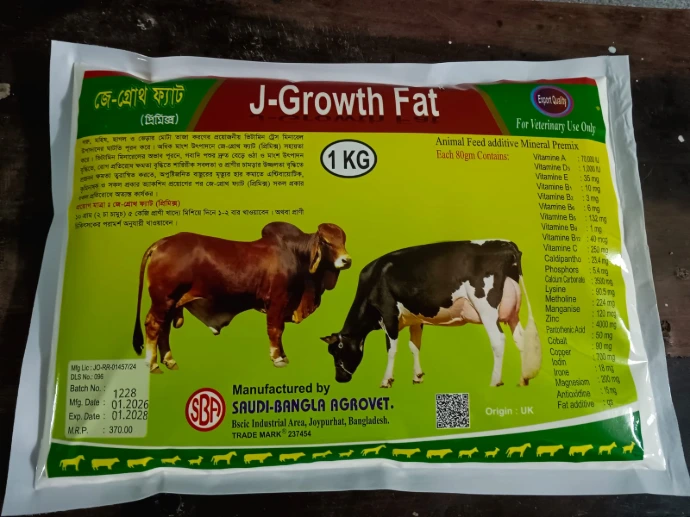 গরু, মহিষ, ছাগল ও ভেড়ার মোটা তাজা করণের প্রয়োজনীয় ভিটামিন ট্রেস মিনারেল উপাদানের ঘাটতি পূরন করে। অধিক মাংশ উৎপাদনে জে-গ্রোথ ফ্যাট (প্রিমিক্স) সহায়তা হয়ে। ভিটামিন মিনারেলের অভাব পুরনে, গবাদি পশুর দ্রুত বেড়ে ওঠা ও মাংশ উৎপাদন বৃদ্ধিতে, রোগ প্রতিরোধ ক্ষমতা বৃদ্ধিতে শারিরীক সবলতা ও প্রাণীর চামড়ার উজ্জলতা বৃদ্ধিতে, প্রজনন ক্ষমতা ত্বরান্বিত করতে, অপুষ্টিজনিত বাছুরের মৃত্যুর হার কমাতে। এন্টিবায়োটি, কৃমিনাষক ও সকল প্রকার ভ্যাকশিন প্রয়োগের পর জে-গ্রোথ ফ্যাট (প্রিমিক্স) সকল প্রকার ধকল প্রতিরোধে অত্যন্ত কার্যকর।