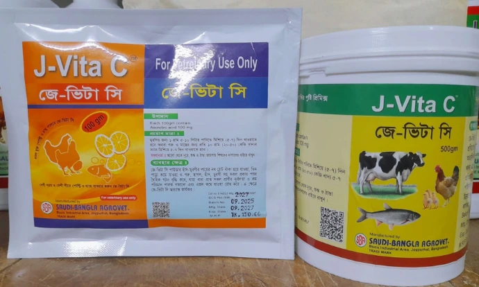 পোল্ট্রি: ১গ্রাম / ৫-১০লিটার পানিতে দিনে ১বার ৩-৫দিন। মাছঃ ২০০-৫০০গ্রামজে ভিটা সি প্রতি টন
